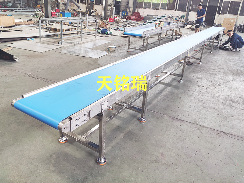 胶带输送机又称皮带输送机,输送带根据摩擦传动原理而运动,适用于输送易于掏取的粉状、粒状、小块状的低磨琢性物料及袋装物料,如煤、碎石、砂、水泥、化肥、粮食等。胶带输送机可在环境温度-20℃至+40℃范围内使用,被送物料温度小于60℃。其机长及装配形式可根据用户要求确定,传动可用电滚筒,也可用带驱动架的驱动装置。